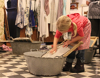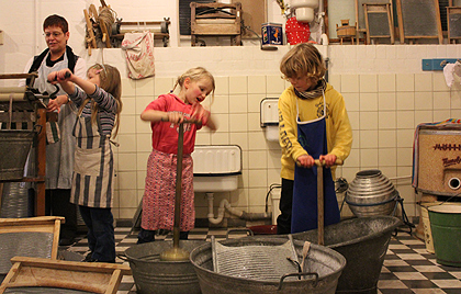 Noch ein Highlight für Mikka und Milena war die alte Waschküche, da waren sie ausdauernd und mit Hingabe dabei!