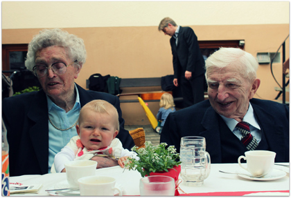 Mit Uroma und Uropa, die zwei Tage zuvor ihre Eiserne Hochzeit gefeiert hatten.