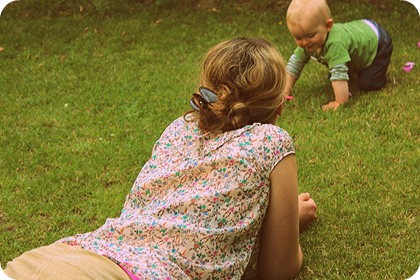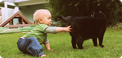 Soweit es dieser ungemütliche Sommer zulässt, zieht es uns nach draußen. Allen voran Mascha. Es muss nur eine Tür offen stehen, schon ist sie weg. Verfolgt die Katzen, beschaut sich Blätter und Steine, holt sich Erdbeeren vom Busch - und ist glücklich.