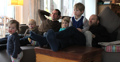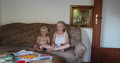Der Lieblingsplatz von M&M: Das Wohnzimmersofa. Und der Fernseher läuft!