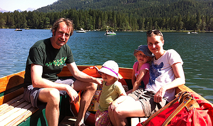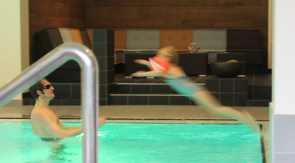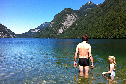 Wieder unten, kühlen sich Thorsten uns Milena im Königsee ab.