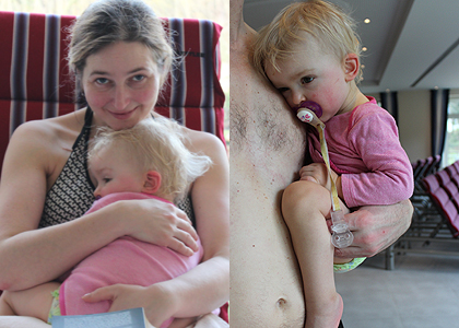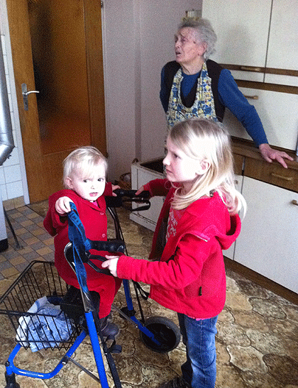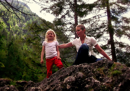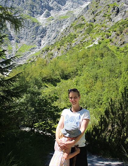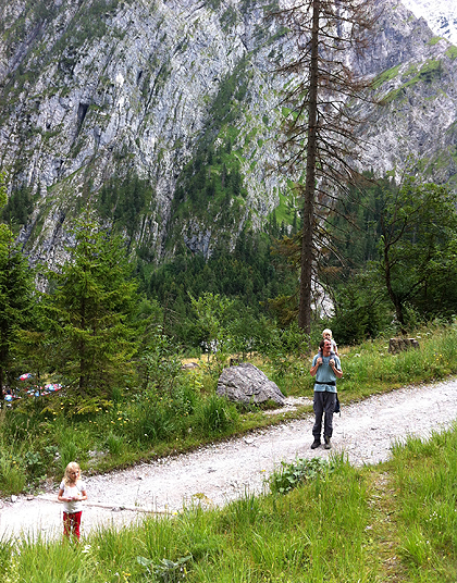 Am vierten Tag muss Mama erst mal zum Arzt. Eine Zecke lässt sich's auf ihrem Po gut gehen. Danach wandern wir - über Stock und Stein - durch die Wimbachklamm hoch zum Wimbachschloss auf 930 m.