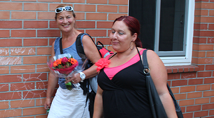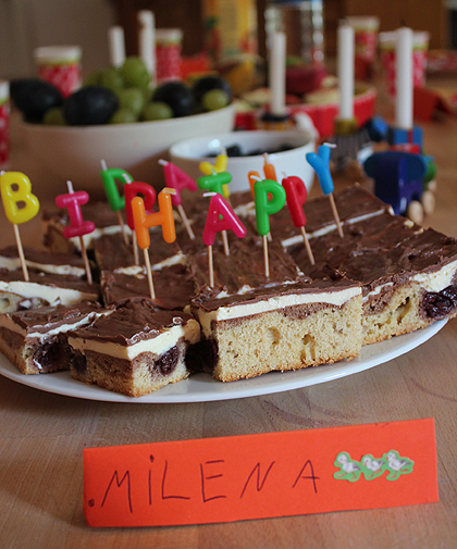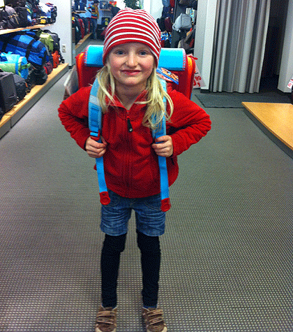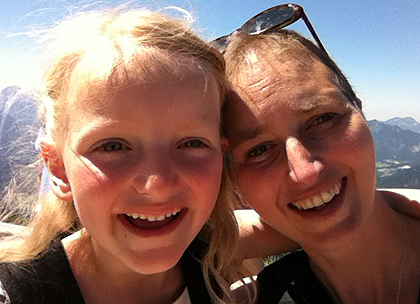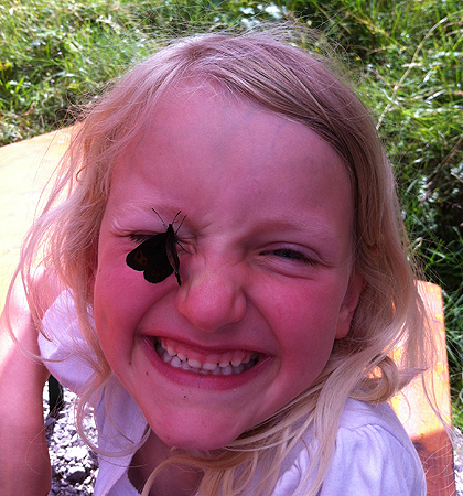 Oben angekommen weicht ein Schmetterling nicht mehr von Milena.