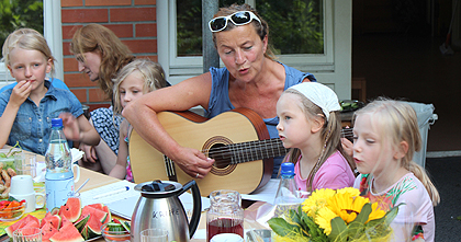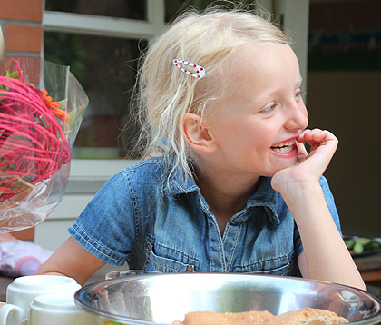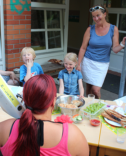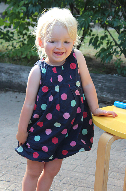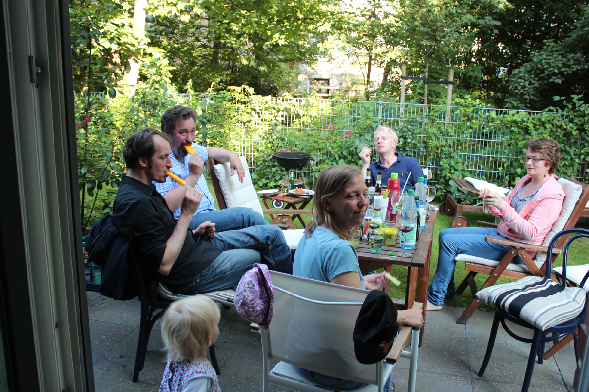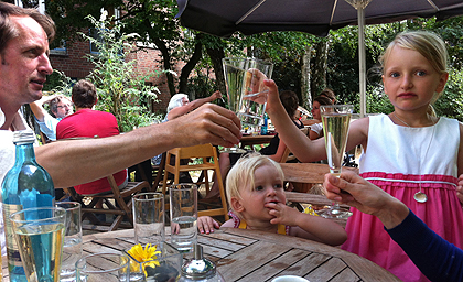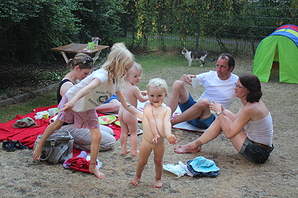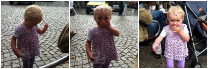 Mascha duscht sich zum ersten Mal in ihrem Leben freiwillig: Ausdauernd und leidenschaftlich unterm Sonnenschirm-Ablauf im Café in Berchtesgaden.
