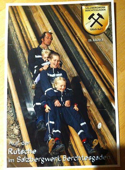 Am zweiten Tag war's regnerisch, also zogen wir uns schicke Anzüge an und rutschten ins Salzbergwerk!