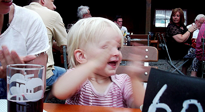 Bei einem Heimatabend im Bierabend ist Mascha völlig hin und weg von derBlasmusik und klatscht begeistert mit.