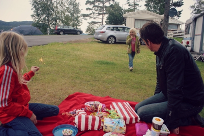 Sich noch unschlüssig dem "Geburtstagstisch" nähern, während wir für den ganzen Campingplatz "Happy Birthday" singen ..